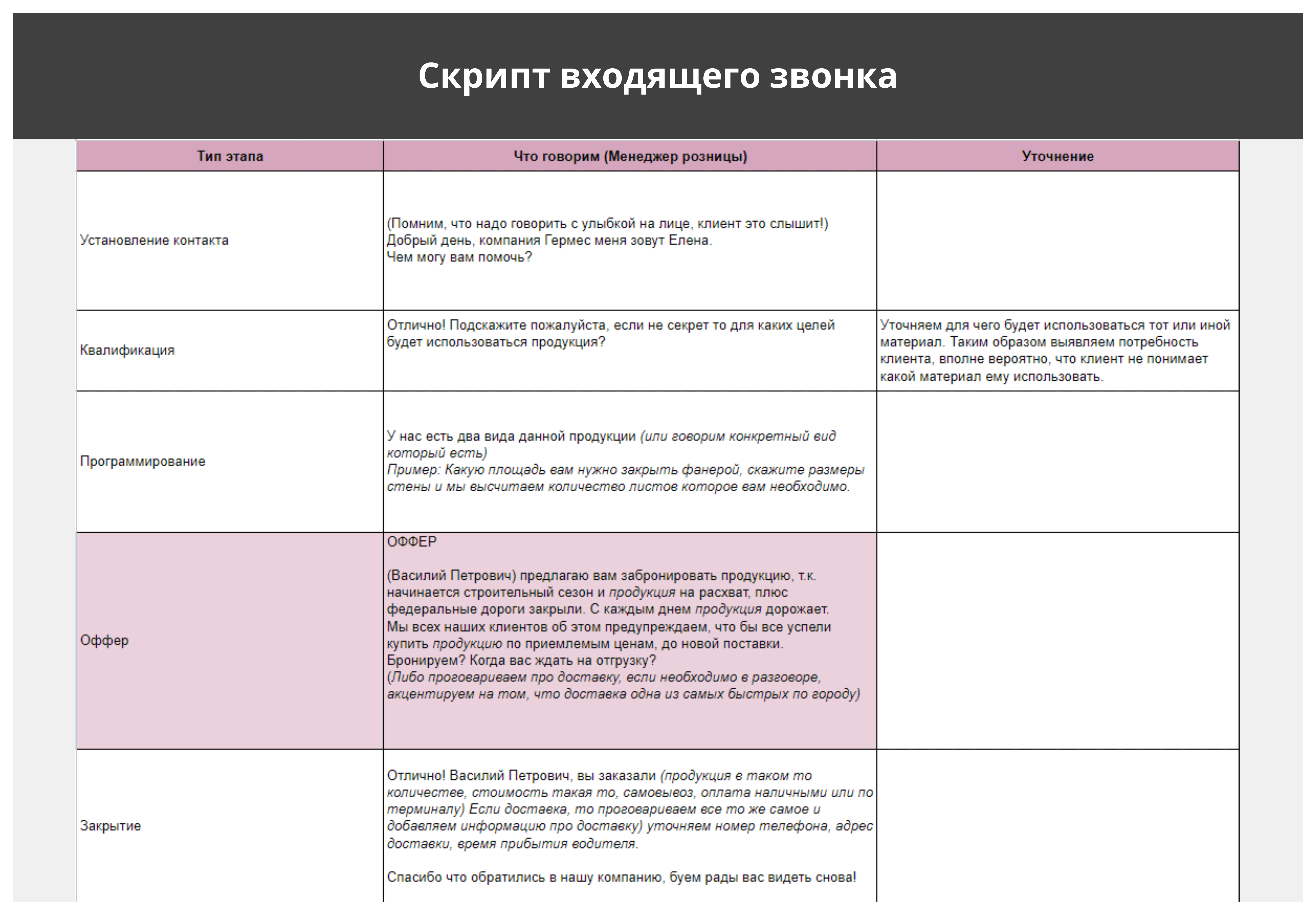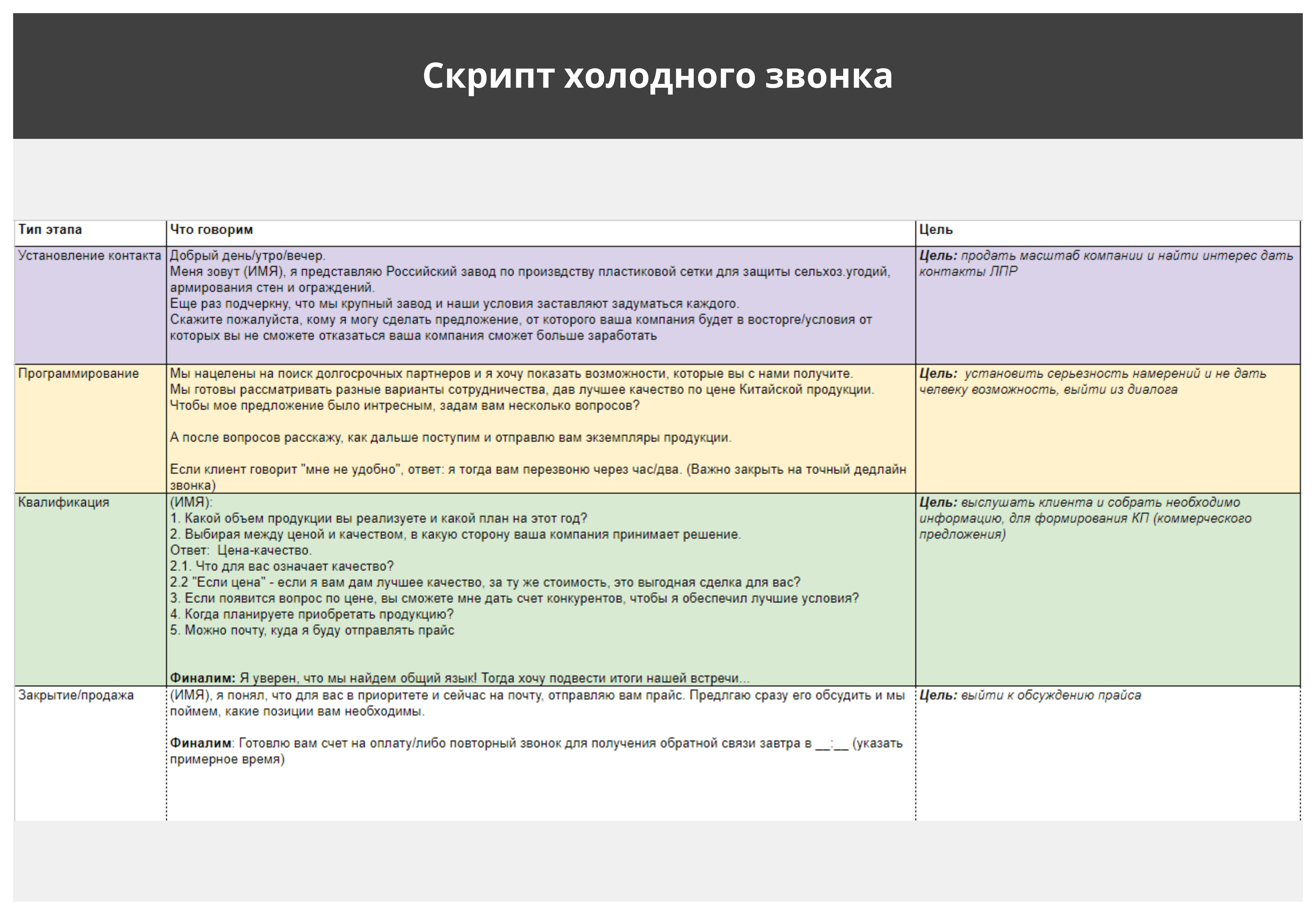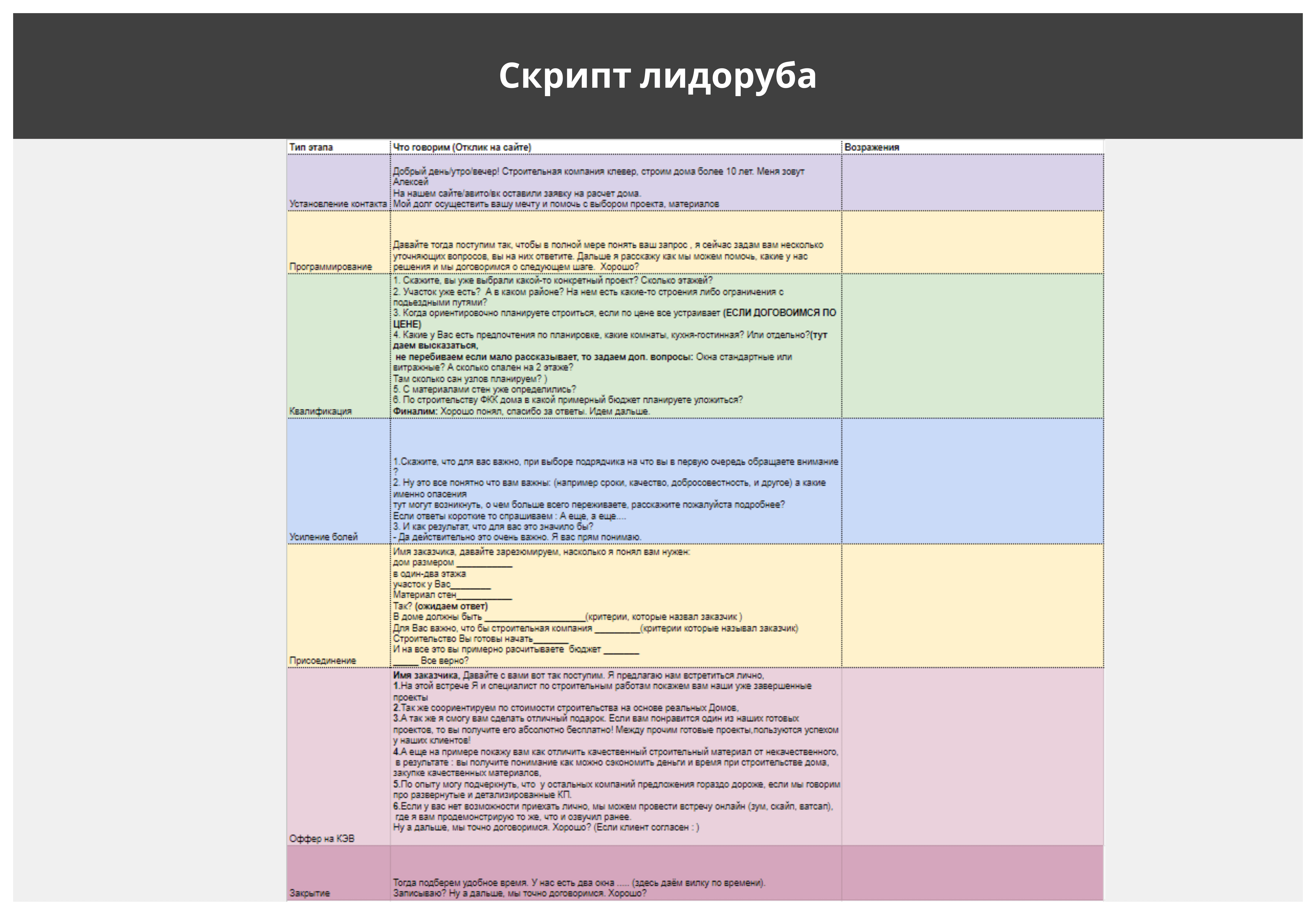 скриптов, эффективной системы продаж