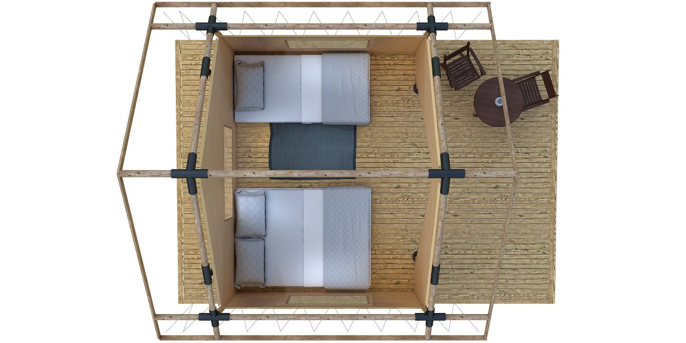 В комплектации «Зима / Лето» имеется возможность установки дополнительных стен отепления, что позволяет существенно увеличить сезон комфортного размещения Ваших гостей.